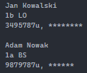 | Nazwisko | 1 | 2 |