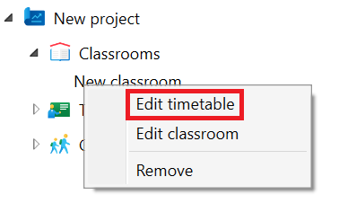 To edit a specific entity's timetable, right-click on its name in the sidebar and select "Edit timetable."